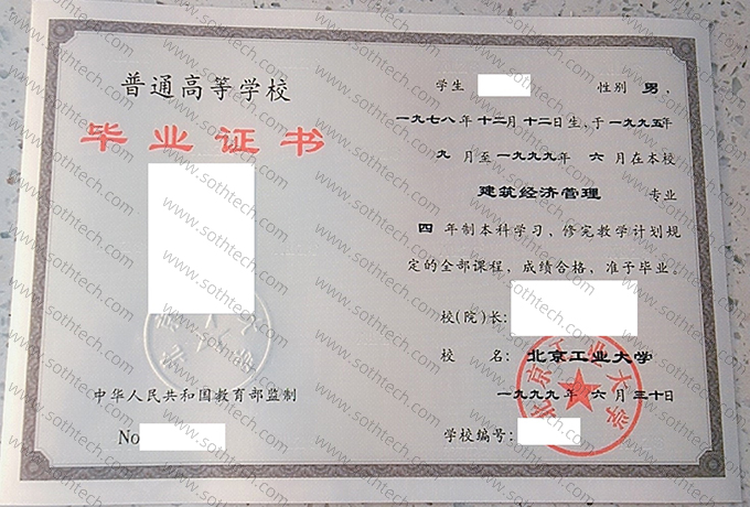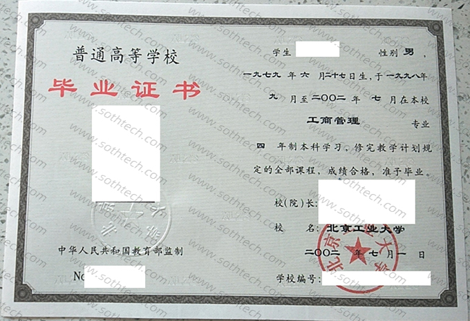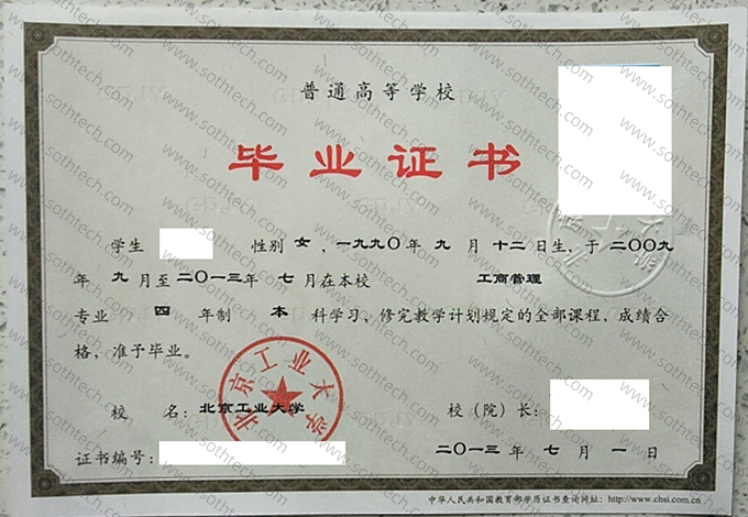 北京工业大学毕业证样本图片