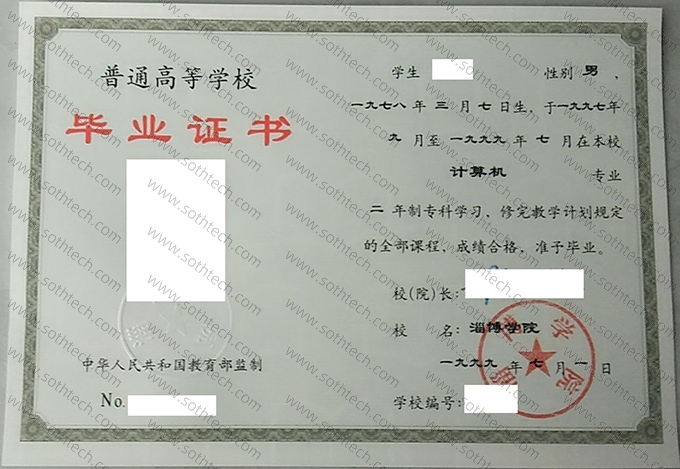 淄博学院毕业证样本图片