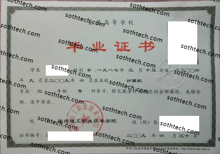福州理工职业技术学院毕业证样本