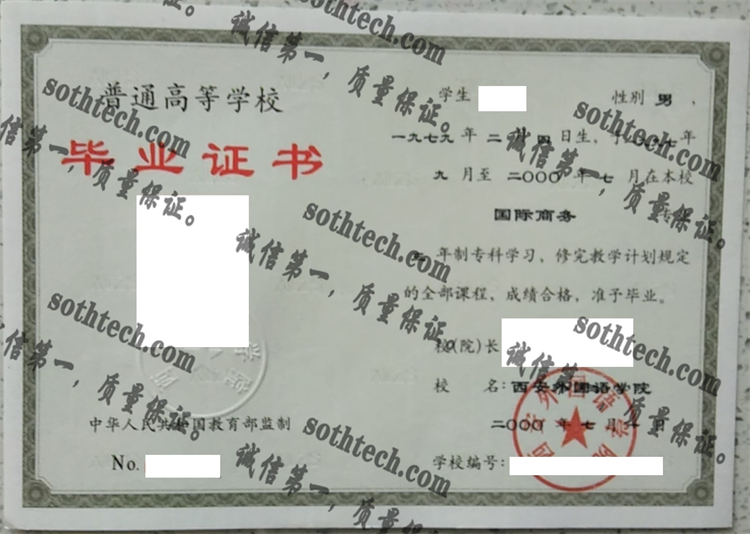 西安外国语学院毕业证样本