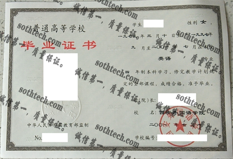 - 西安外国语大学毕业证样本