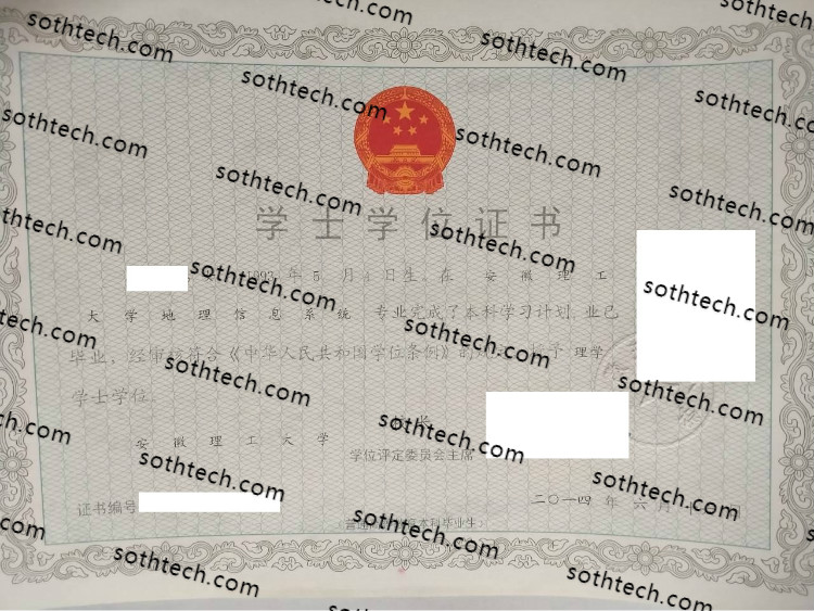 安徽理工大学学士学位证书样本