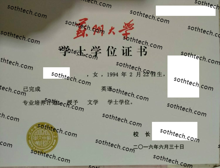 苏州大学学士学位证书样本