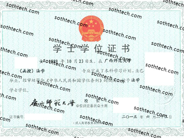 广西师范大学学士学位证书样本