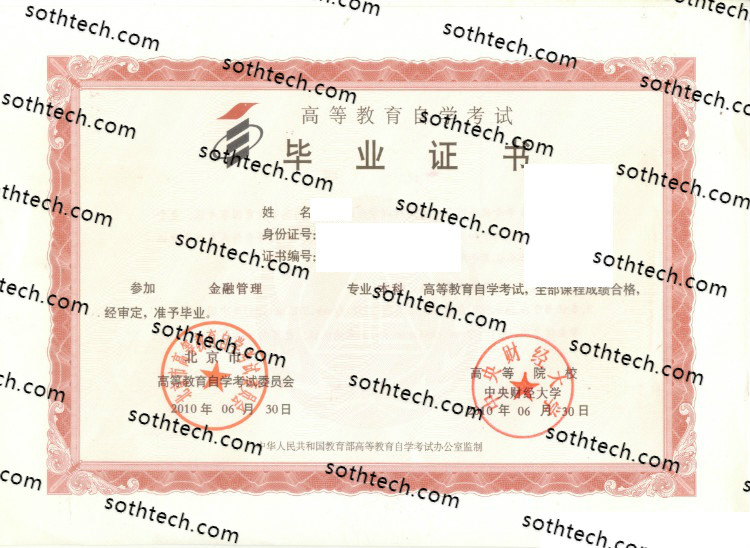 中央财经大学自学考试毕业证样本